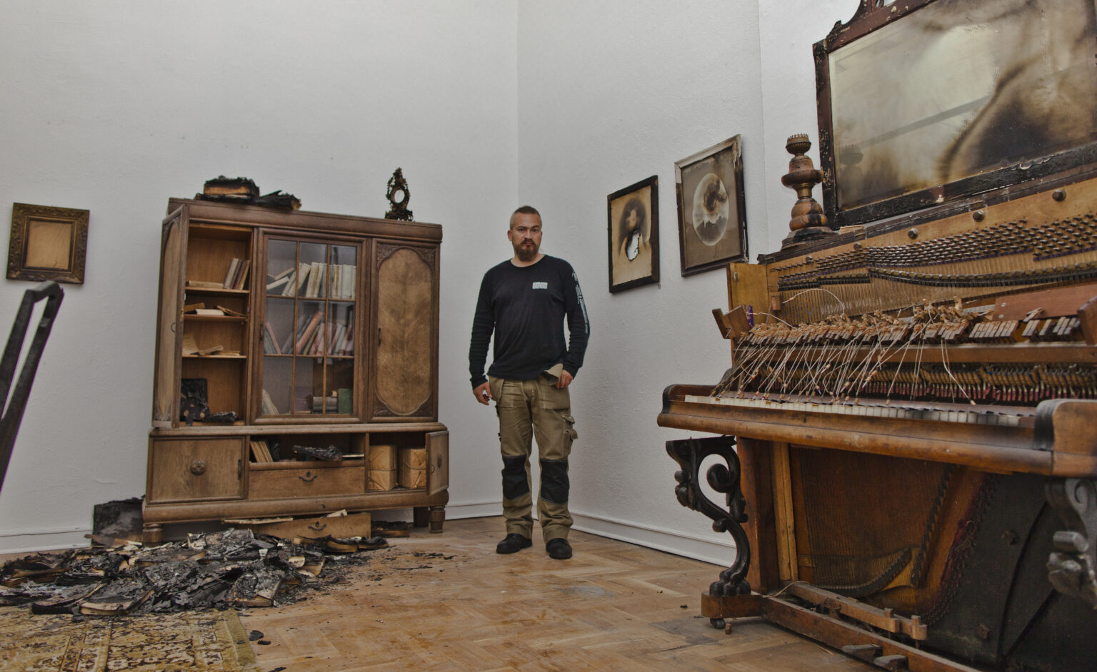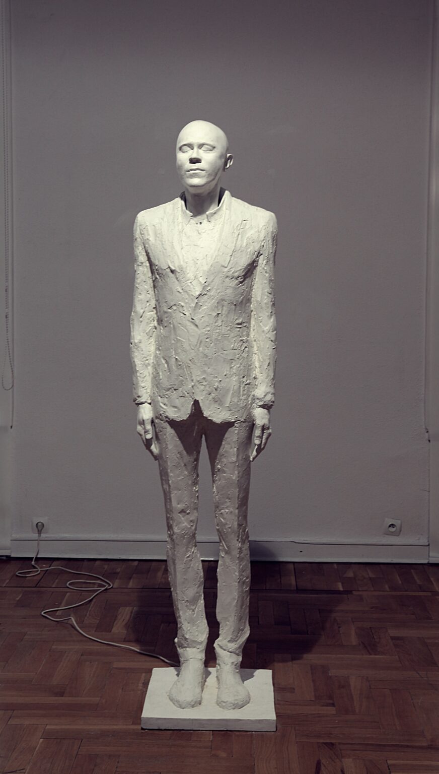 Performace Janusza Bałdygi podczas otwarcia wystawy "Iluminacje", 9 grudnia 2019